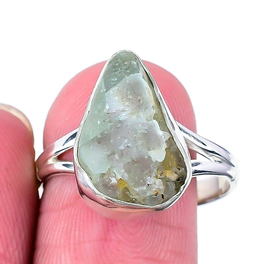 Natural Prehnite Solid Silver Artisan Engagement Channel Set Cluster Sister Ring