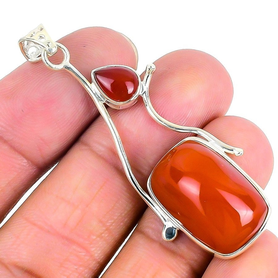 Sacral Chakra Red Carnelian Stone 925 Silver Unique Daughter Artisan New Pendant