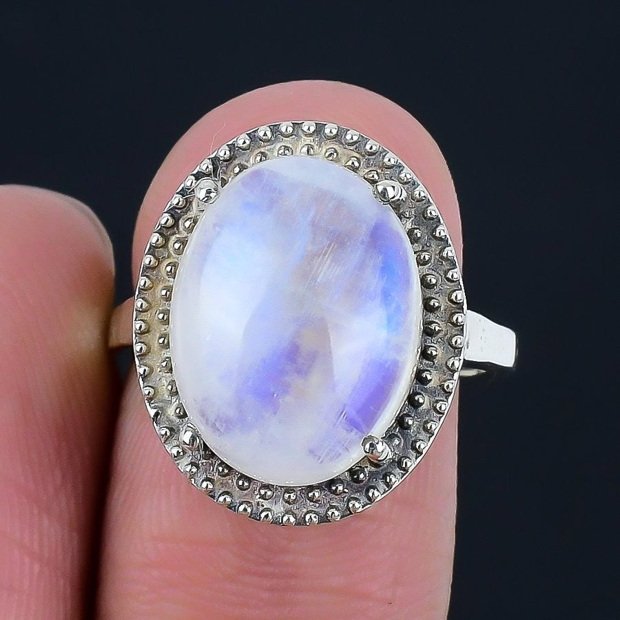 Rainbow Moonstone Stone Solid Silver Statement Daughter Gift Ring Jewelry US 8