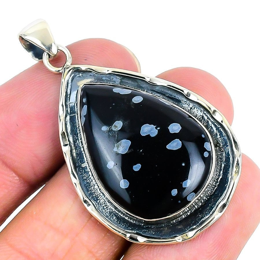 Natural Snoflake Obsidian Daughter Bezel Elegant Engagement Pendant 925 Silver