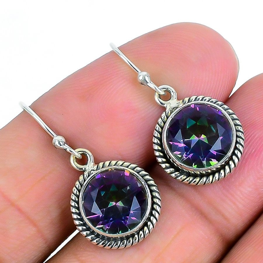 Mystic Topaz Gemstone Sterling Silver Hook Wedding Dangle Bezel Sister Earrings
