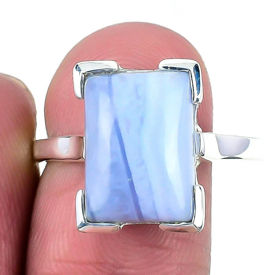 Blue Lace Agate Gemstone Sterling Silver Statement Wedding Ring Jewelry US 10