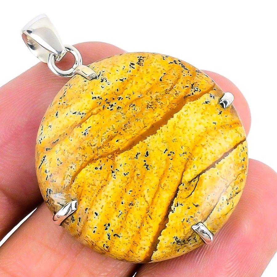 Picture Jasper Stone 925 Silver Daughters Day Artisan Handmade Pendant Jewelry