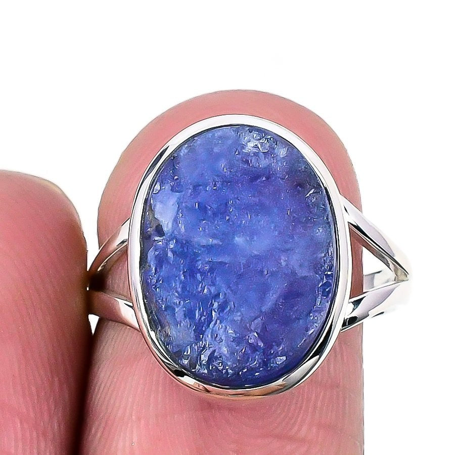 Tanzanite Druzy Stone Solid Silver Anniversary Statement Engagement Ring Size 8