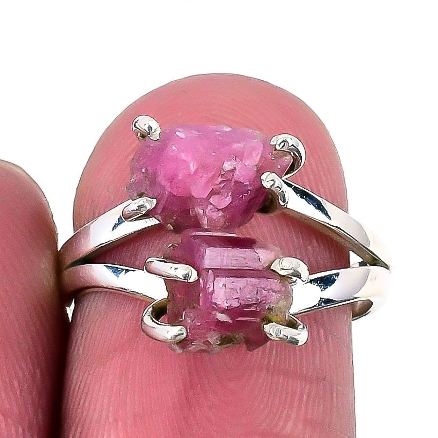Pink Tourmaline Gemstone 925 Sterling Silver Statement Art Deco Trendy Ring US 7
