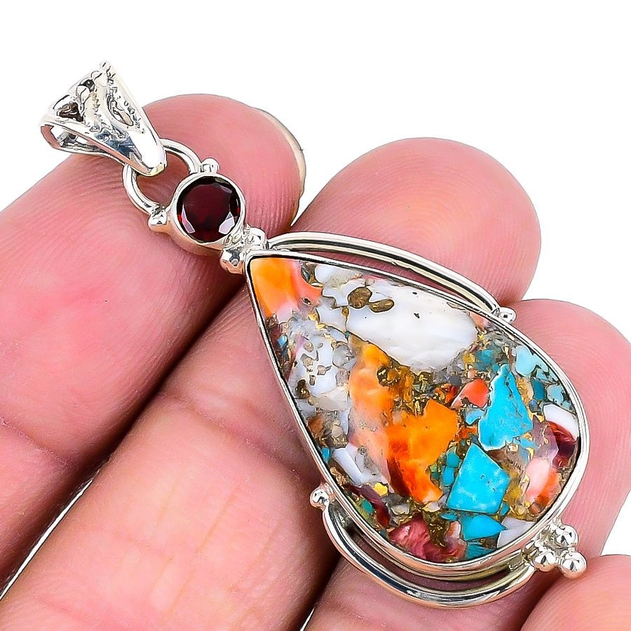 Spiny Oyster Turquoise Gemstone Solid Sterling Silver Bezel Boho Pendant Jewelry