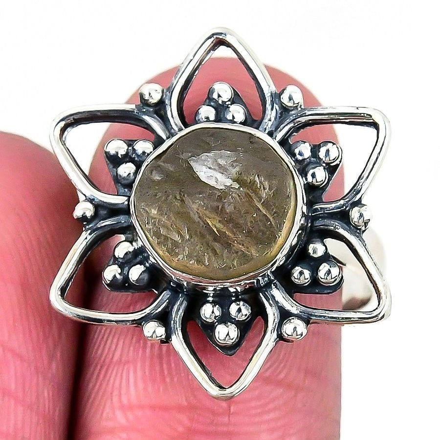 citrine druzy Stone Solid Silver Cluster Channel Set Daughters Day Ring Jewelry