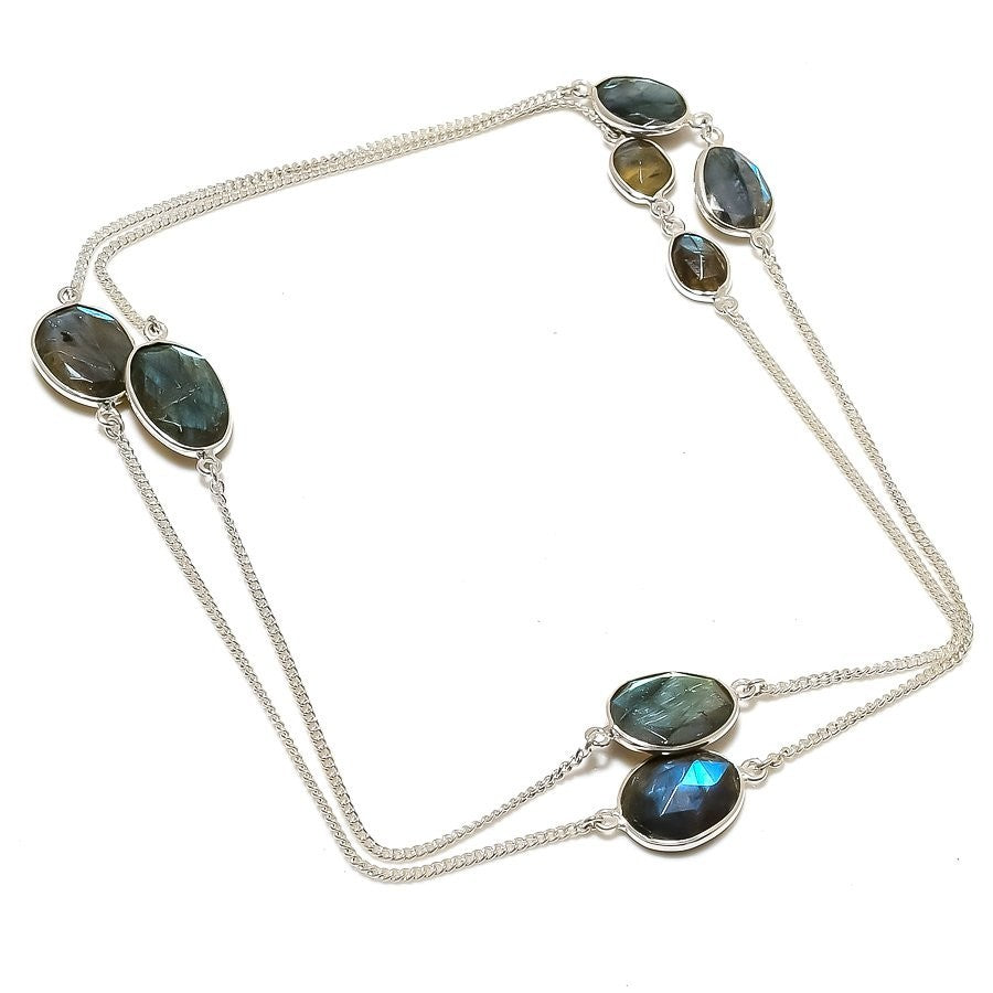 Labradorite Gemstone Solid Sterling Silver Sister Elegant Chain Necklace Jewelry