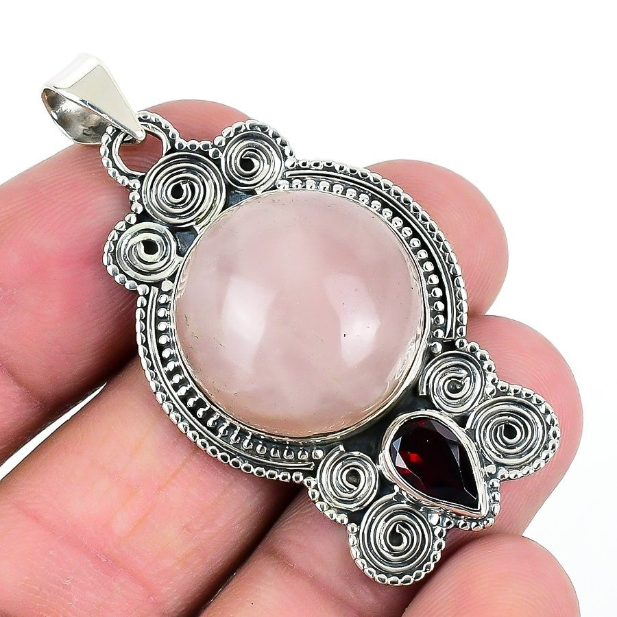 Heart Chakra Rose Quartz Gemstone 925 Silver Birthday Wedding Pendant Jewelry