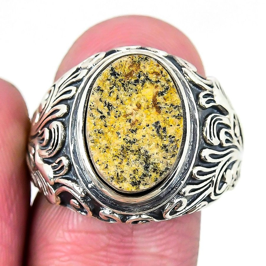 Psilomelaine Dendritic Stone 925 Sterling Silver Cluster Wedding Ring Size 8.5