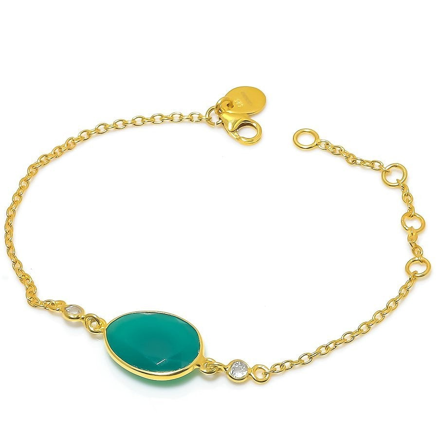 Green Onyx Gemstone 925 Silver Wife Chain Anniversary Art Deco Bracelet Jewelry