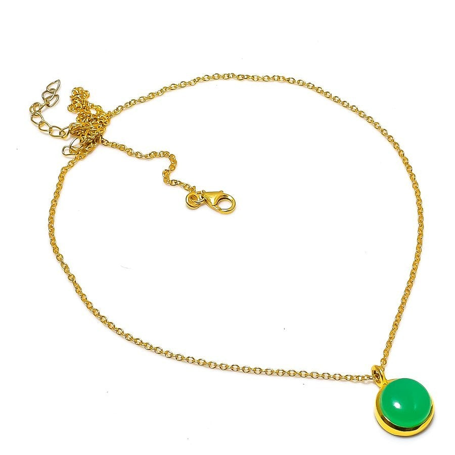 Heart Chakra Natural Chrysoprase Sterling Silver Trendy Chain Sister Necklace