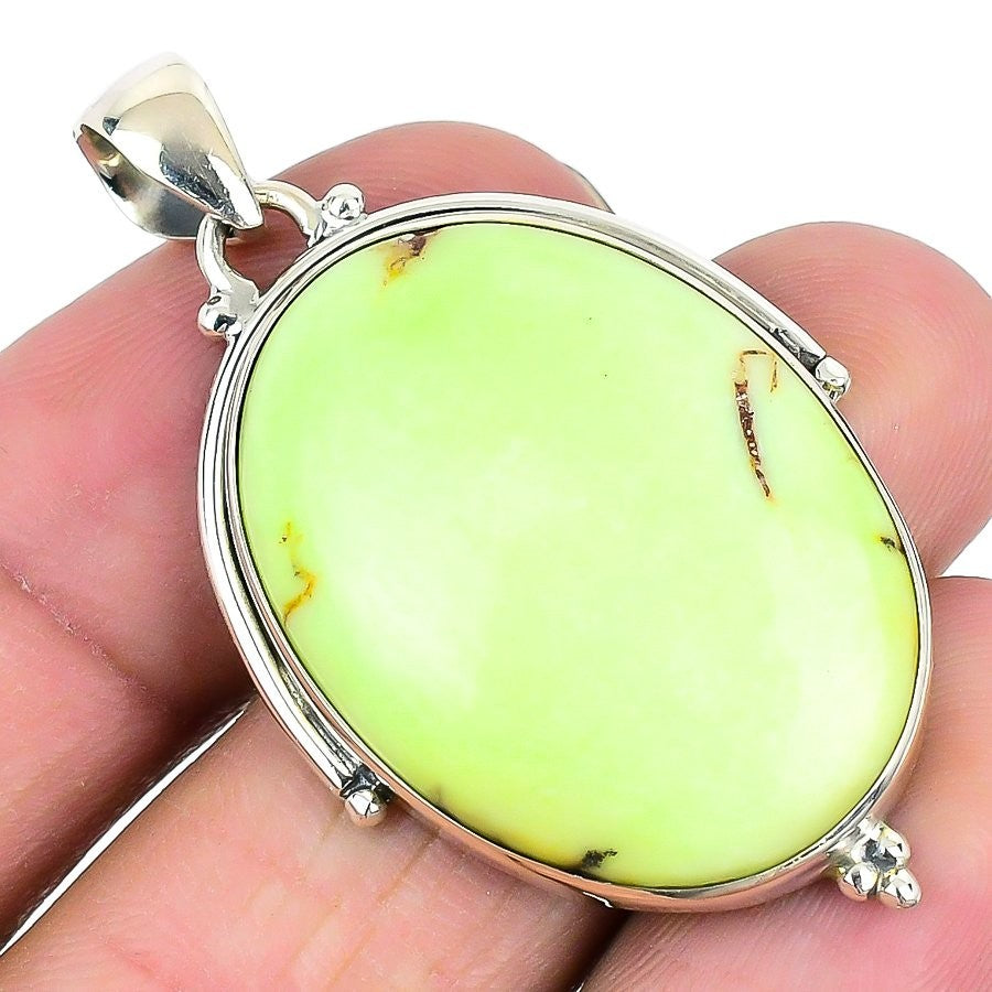 Natural Lemon Chrysoprase Heart Chakra Artisan Wife Pendant Jewelry Solid Silver