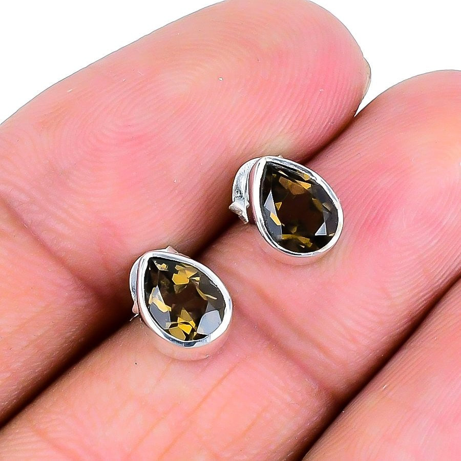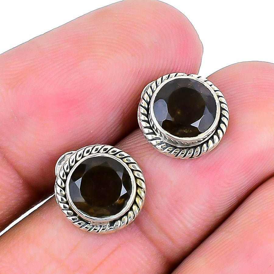 Smokey Gemstone Solid Silver Engagement Trendy Stud Best Daughters Gift Earrings