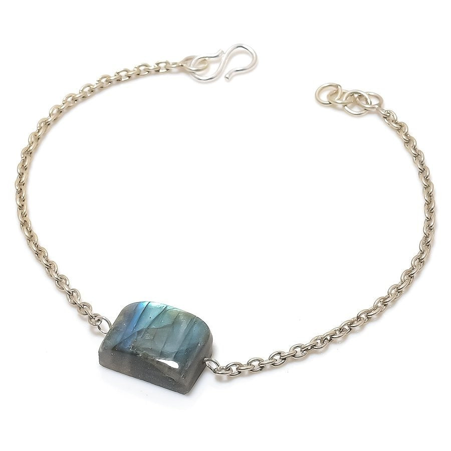 Labradorite Gemstone Solid Sterling Silver Chain Daughter Gift Bracelet Jewelry