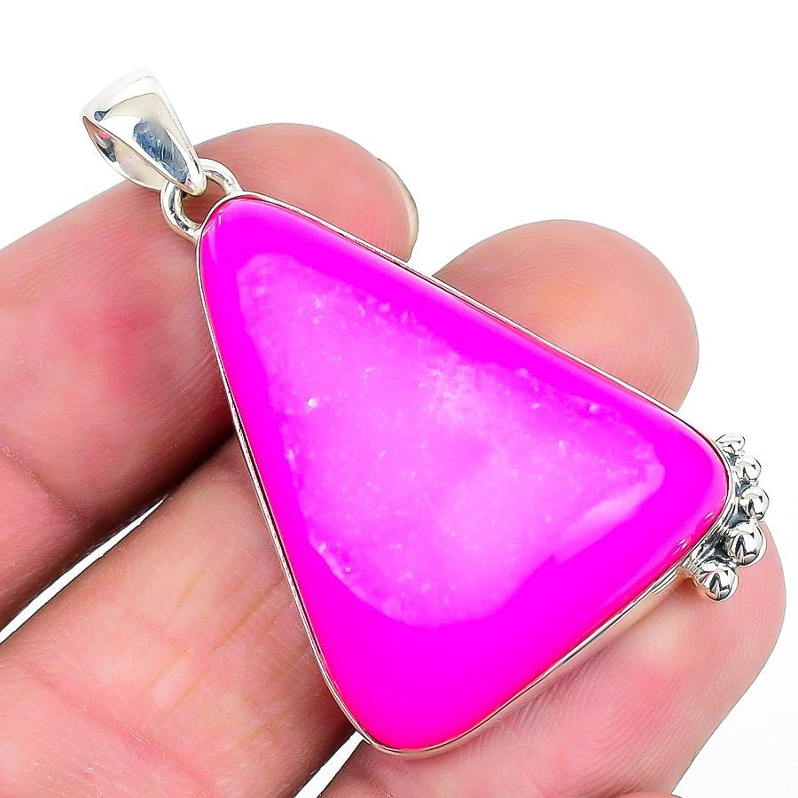 Pink Botswana Druzy Stone Wife Artisan Boho Bezel New Pendant Jewelry 925 Silver