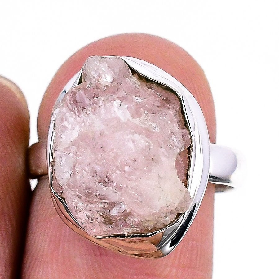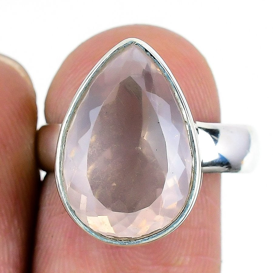 Daughters Day Sale Rose Quartz Gemstone Solid Silver Statement Boho Ring Size 6
