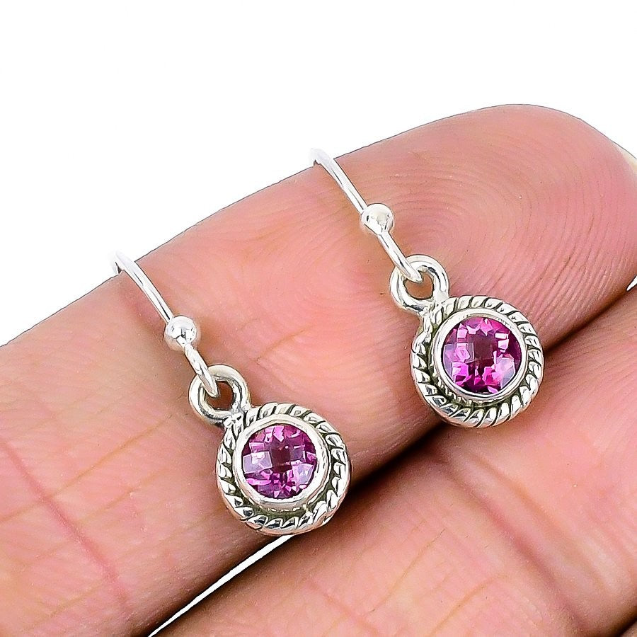 Pink Topaz Stone Anniversary Dangling Wife Boho Earrings Jewelry Solid Silver