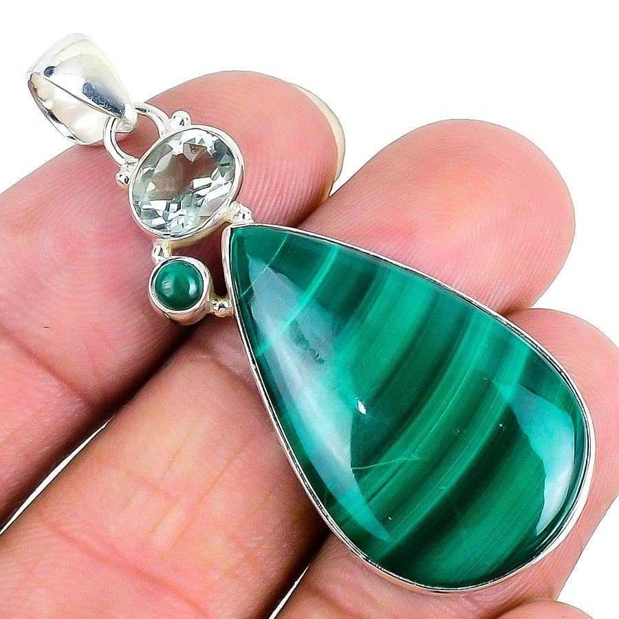 Daughters Day Deal Malachite Gemstone Mother Bezel New Pendant Sterling Silver