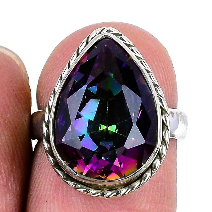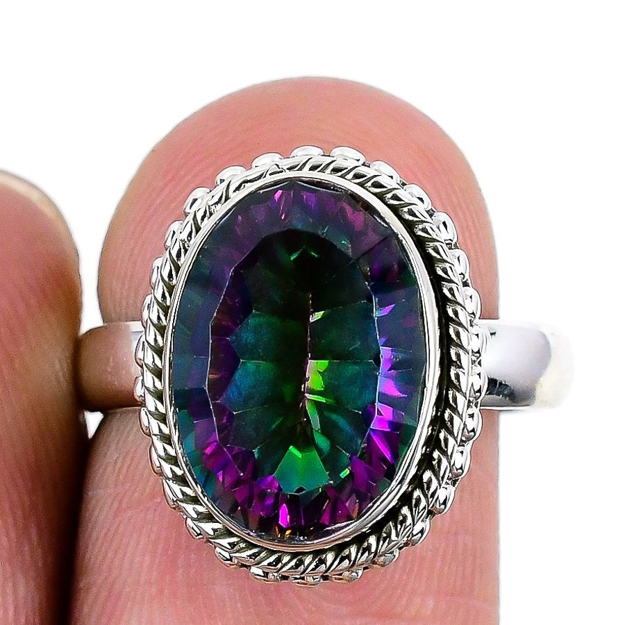 Mystic Topaz Stone Sterling Silver Wedding Statement Mother Elegant Ring US 6.5