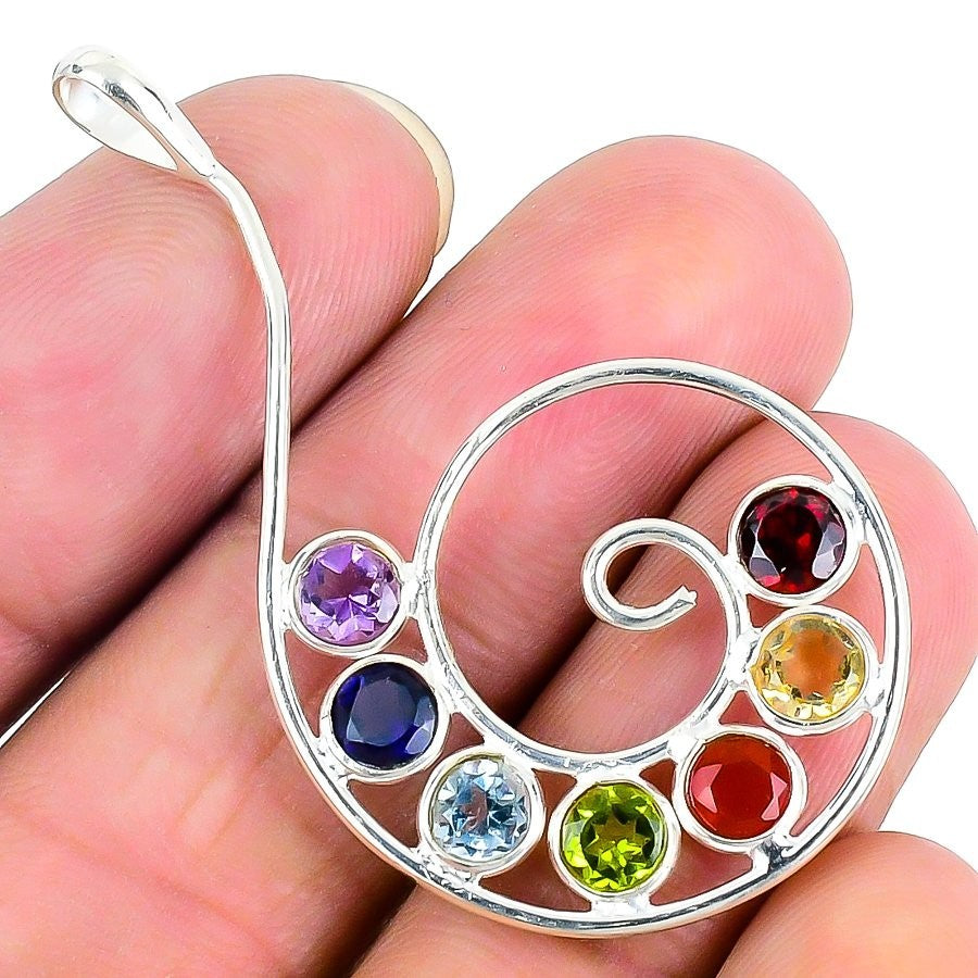 Seven Chakra Gemstone Solid Sterling Silver Bezel Best Daughters Gift Pendant