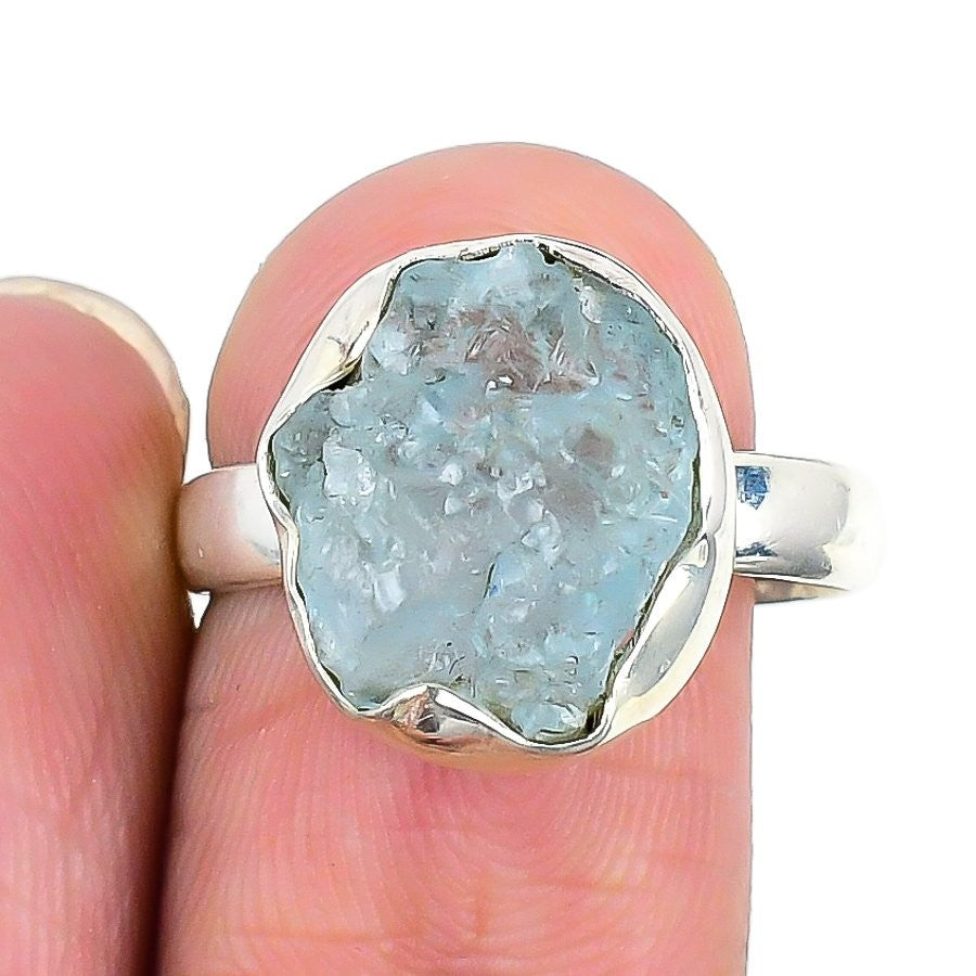 Aquamarine Gemstone Artisan Statement Bezel Ring Size 8.5 Solid Sterling Silver