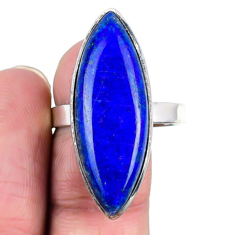 Natural Lapis Lazuli Solid Silver Artisan Bezel Statement Ring Jewelry Size 11