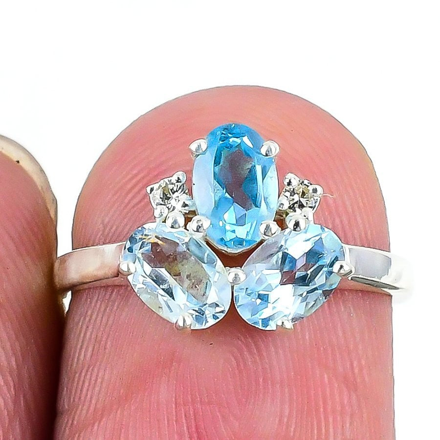 Swiss Blue Topaz Gemstone 925 Silver Statement Daughter Bezel New Ring Size 6