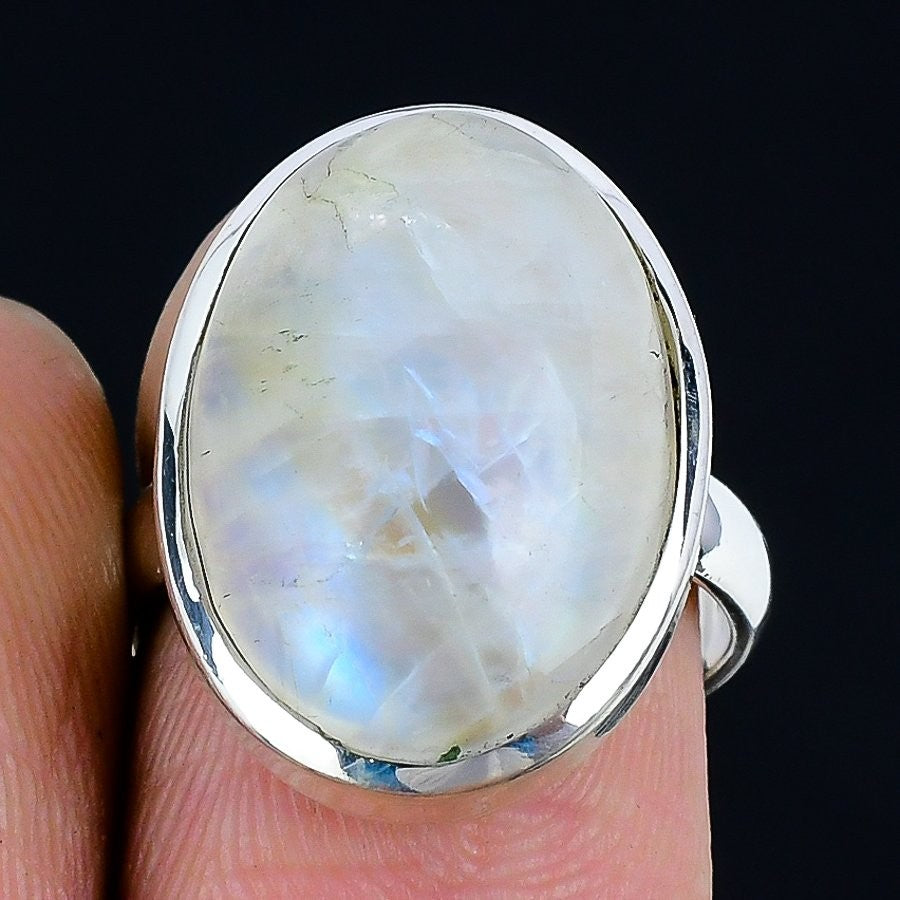 Moonstone Stone 925 Silver Engagement Statement Best Daughters Gift Ring US 8