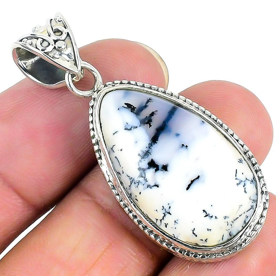 Dendrite Opal Gemstone Bezel Mother Engagement Art Deco Pendant 925Ā SolidĀ Silver