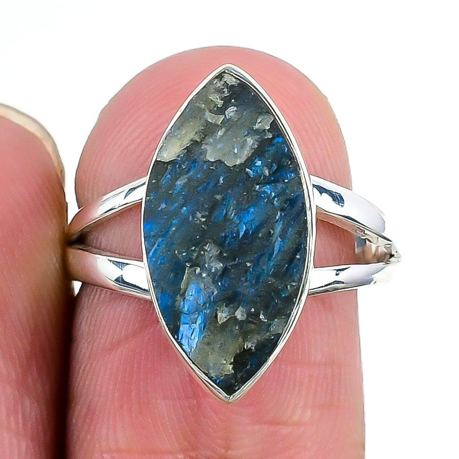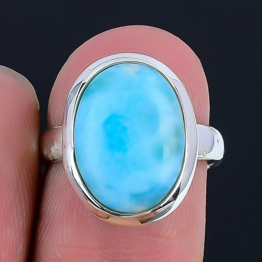 Natural Larimar 925 Silver Wedding Statement Throat Chakra Ethnic Ring Size 6.5
