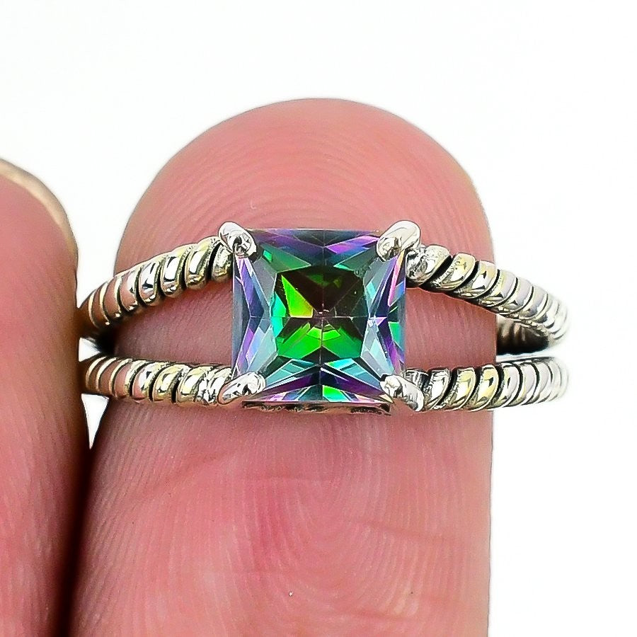 Natural Mystic Topaz Solid Silver Daughters Day Engagement Statement Ring Size 7
