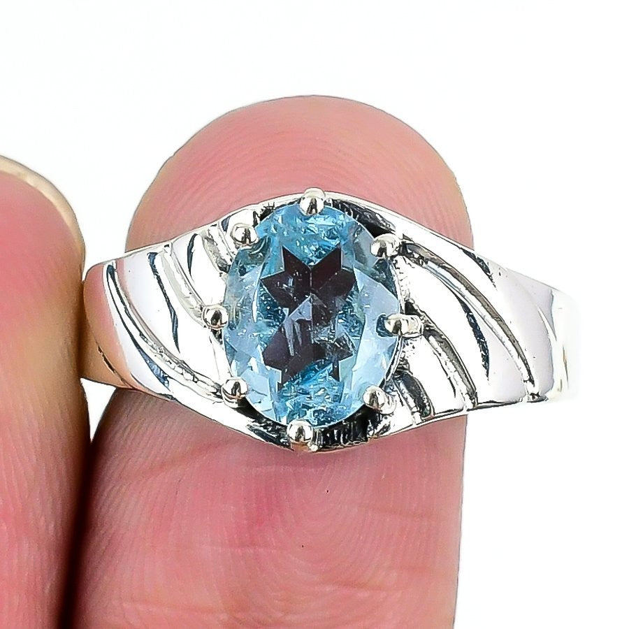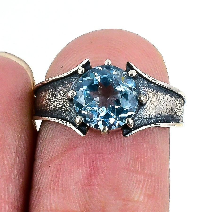 Daughters Day Sale Natural Swiss Blue Topaz 925 Solid Silver Statement Boho Ring