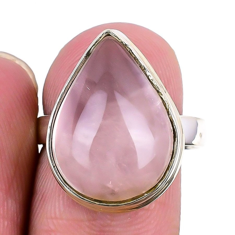Rose Quartz Stone Sterling Silver Engagement Elegant Statement Boho Ring US 7