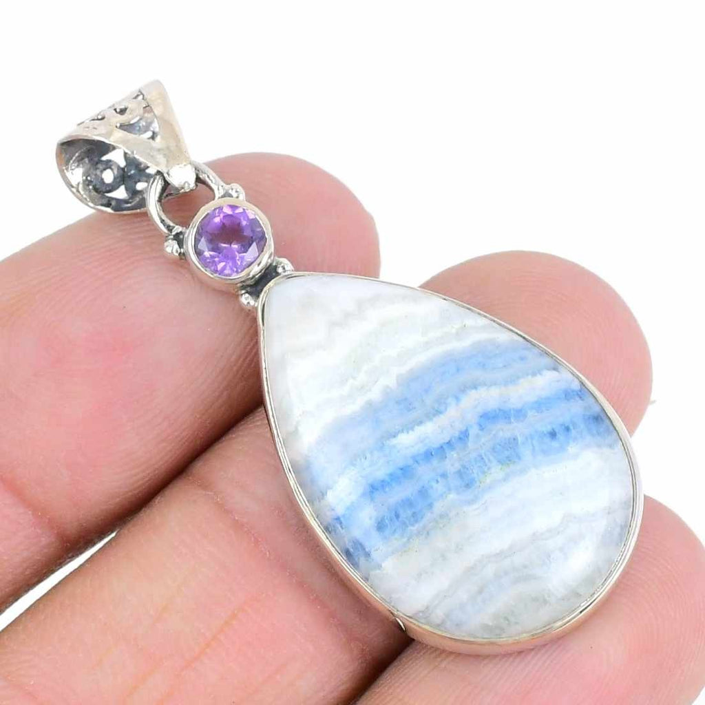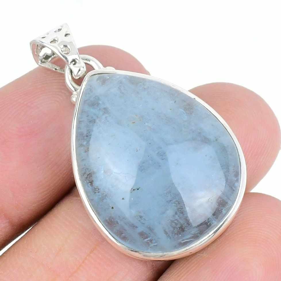 March Aquamarine Gemstone Solid Silver Wife New Best Daughters Gift Boho Pendant