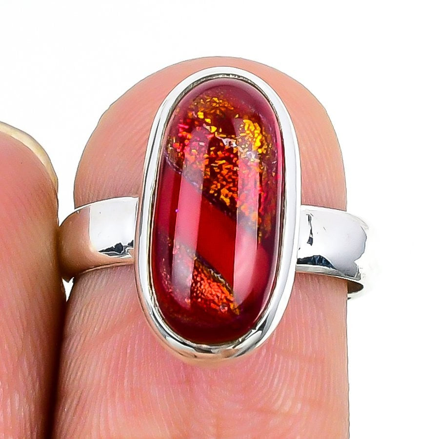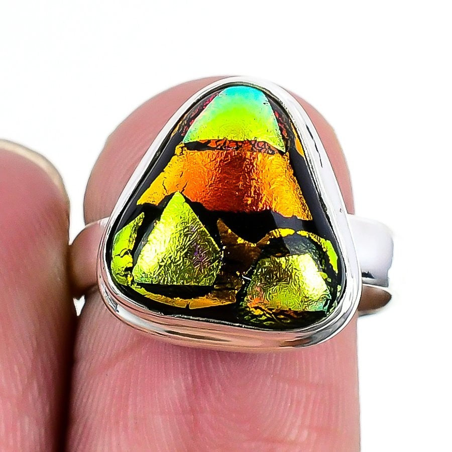Mexican Dico Glass Gemstone Sterling Silver Statement Wife New Ring Jewelry US 8