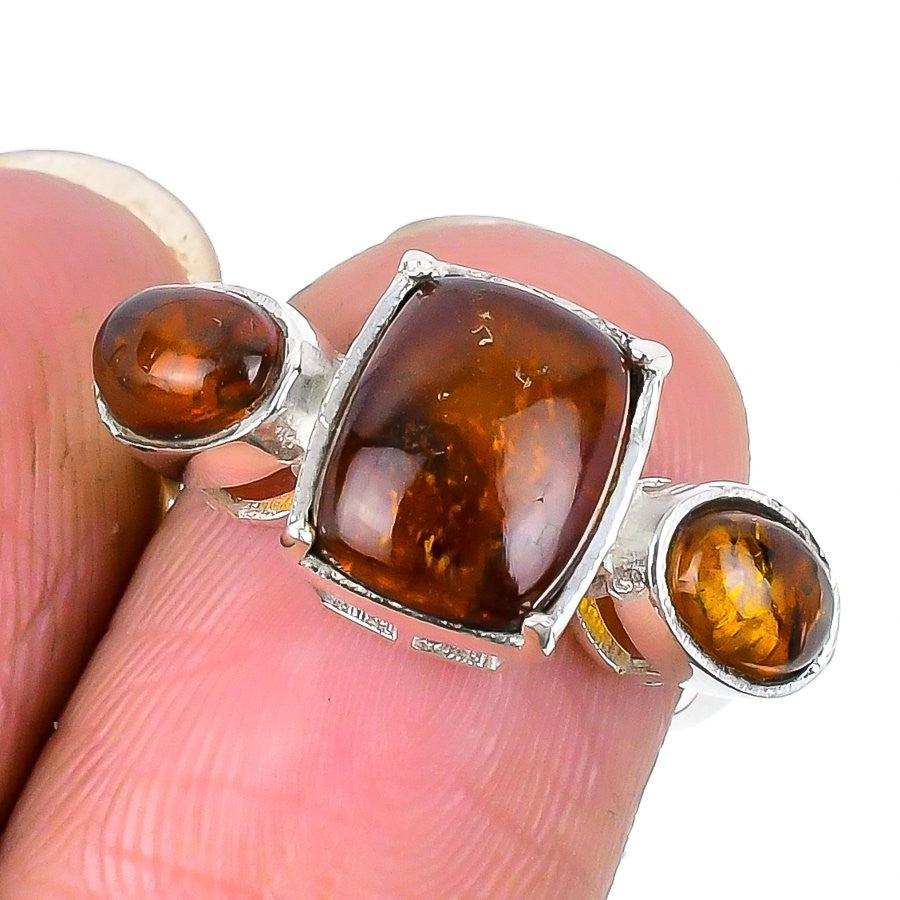 Daughters Day Sale Natural Baltic Amber 925 Solid Silver New Statement Ring US 6