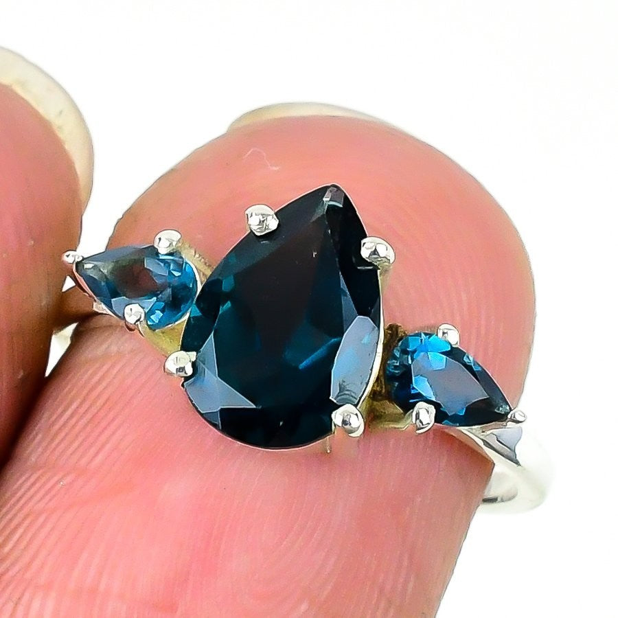 London Blue topaz Gemstone Statement Ring Jewelry Size 7 Solid Sterling Silver