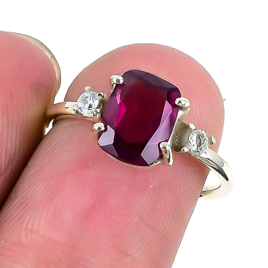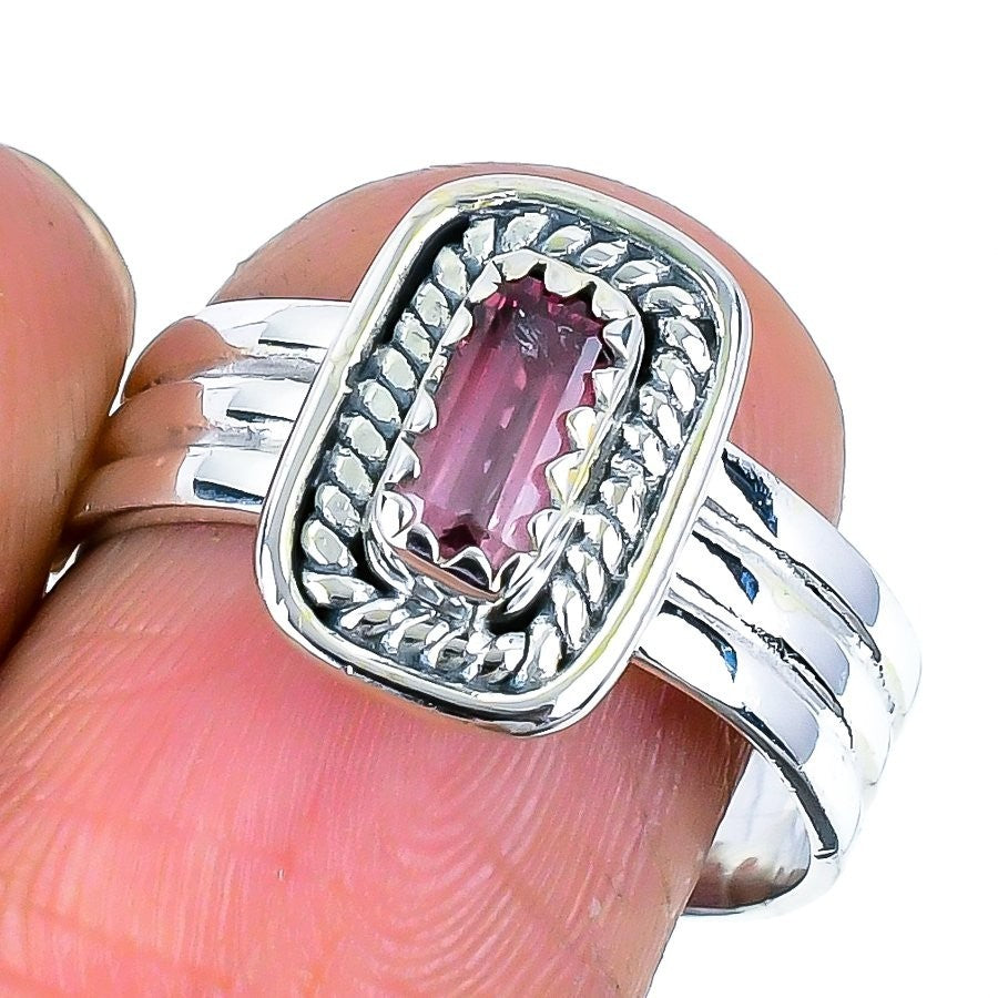Natural Pink Tourmaline Statement Artisan Ring Jewelry Sterling Silver US 8.5