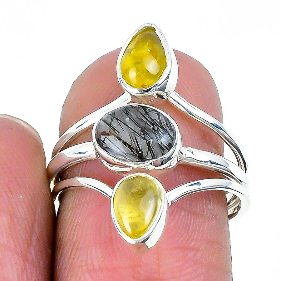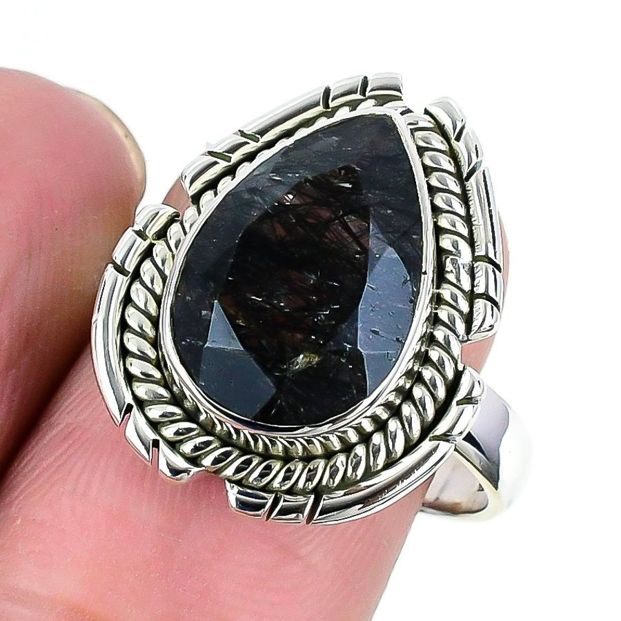 Black Rutile Stone 925 Silver Statement Wife Trendy Ethnic Ring Jewelry US 7.5