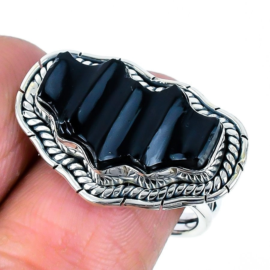 Black Onyx Bat Gemstone Solid Sterling Silver Statement Handmade Ring Size 7.5