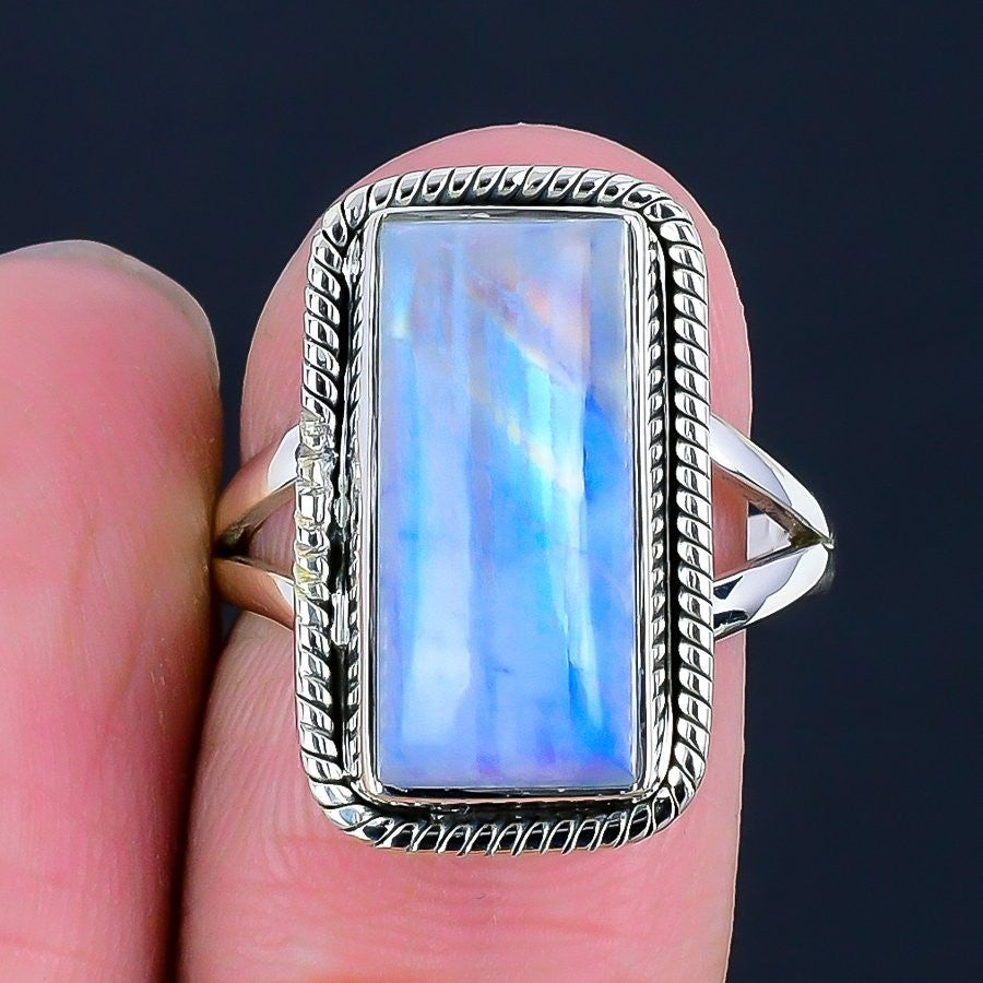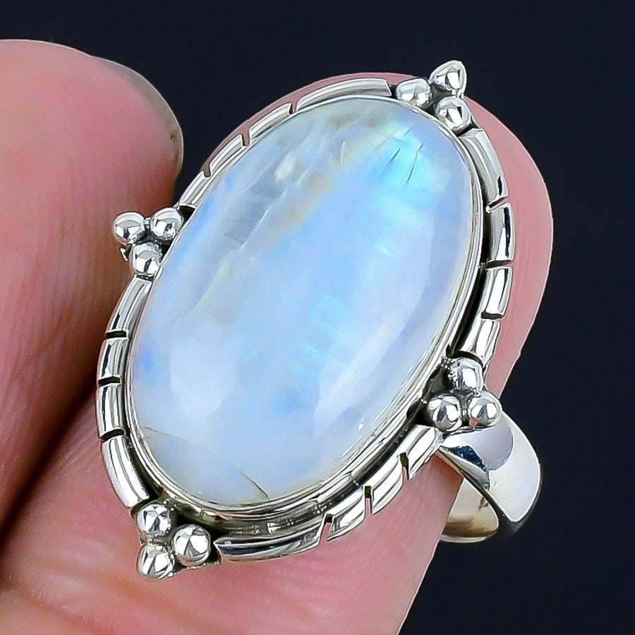 Crown Chakra Rainbow Moonstone Gemstone Cluster Sister Ring Size 8 925 Silver