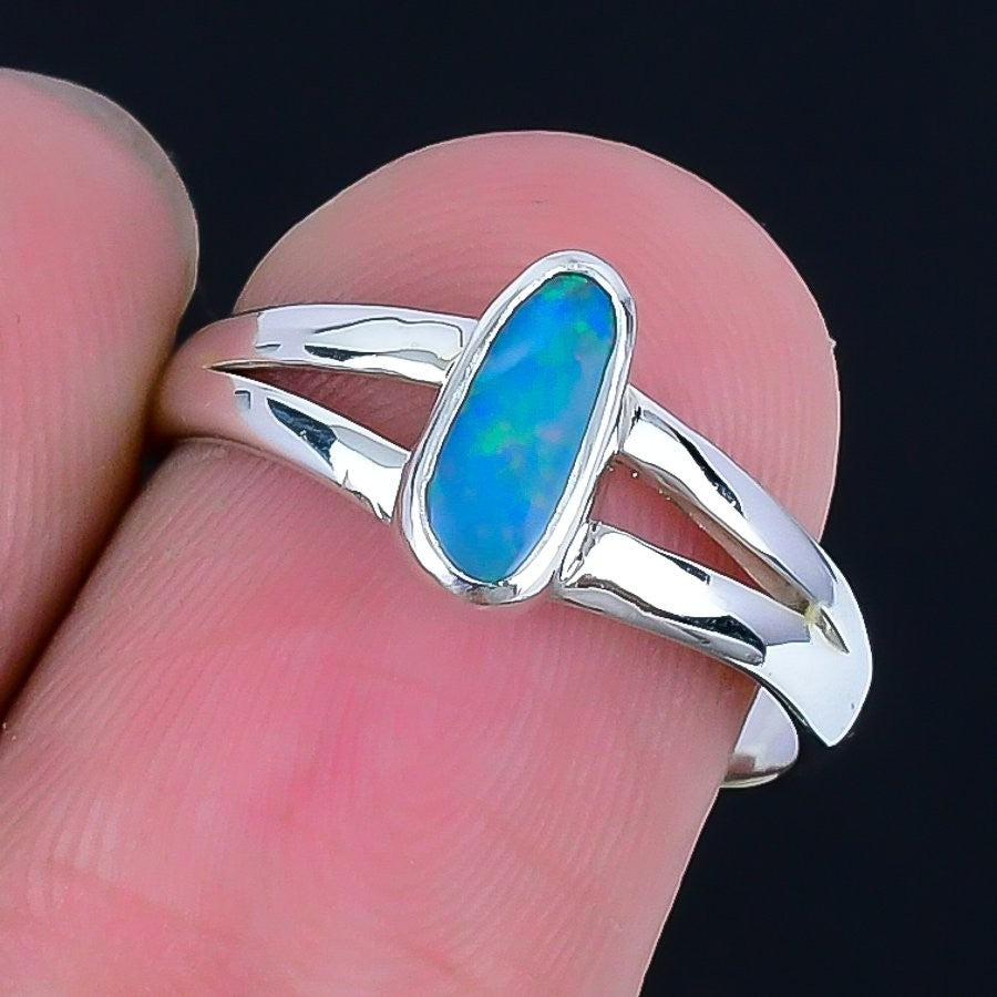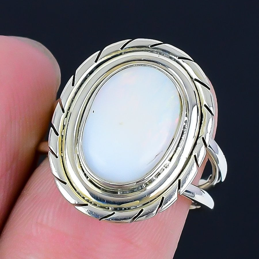 Natural Ethiopian Opal Wedding Wife Cluster Elegant Ring Size 7 Sterling Silver