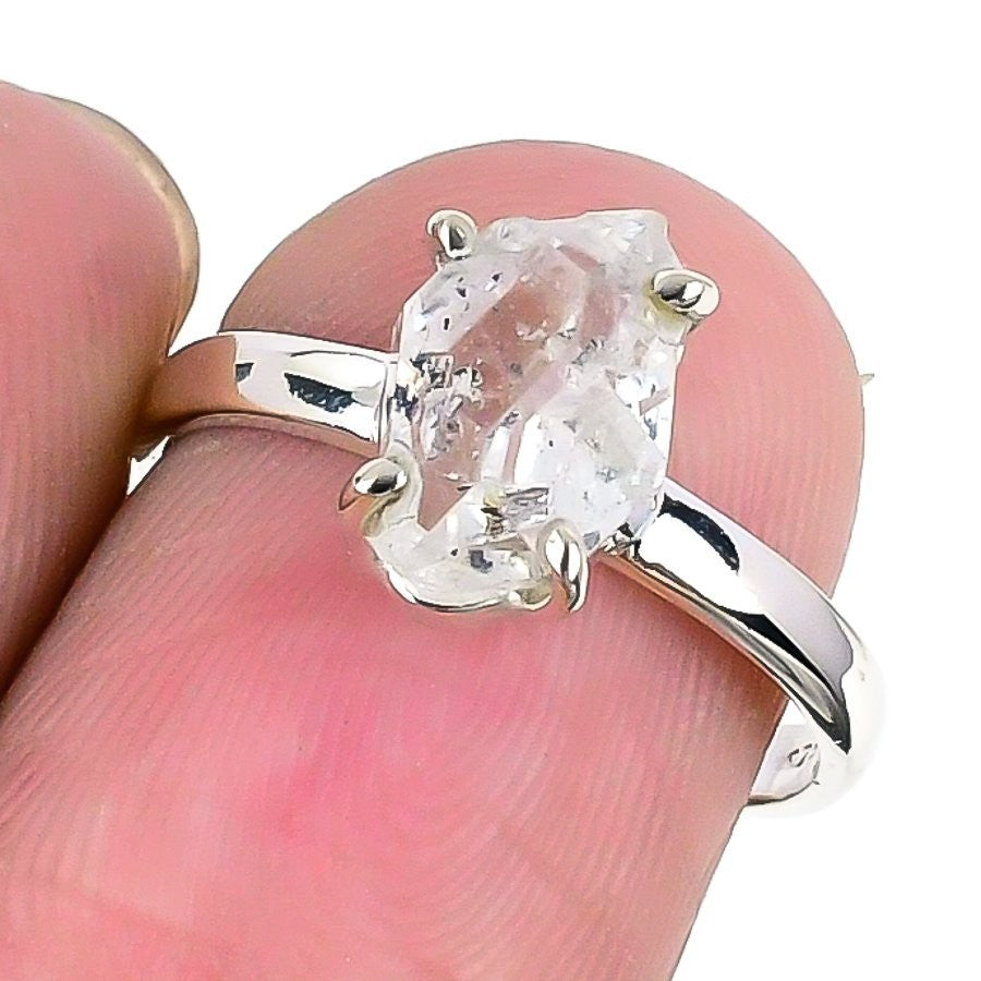 Natural Herkimer Diamond 925 Solid Silver Daughter Cluster Handmade Ring Size 7