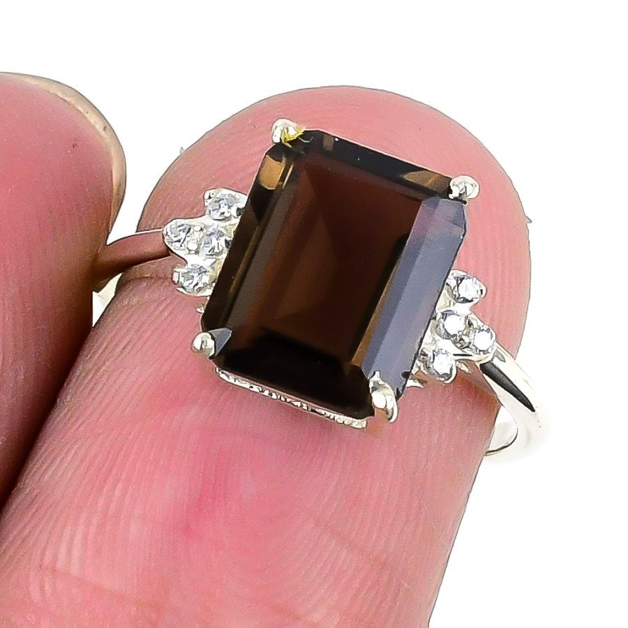 Smoky Topaz Stone Birthday Cluster Daughter Wedding Ring Size 7 Sterling Silver