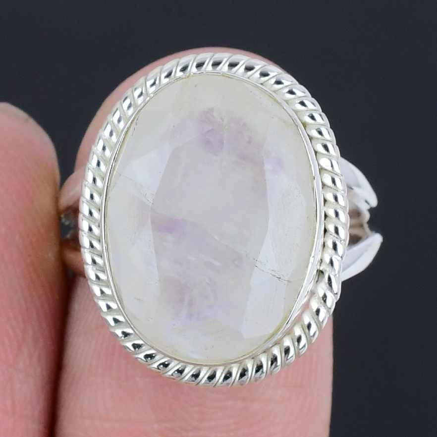 Rainbow Moonstone Faceted Gemstone New Cluster Ring Jewelry Size 8 Solid Silver