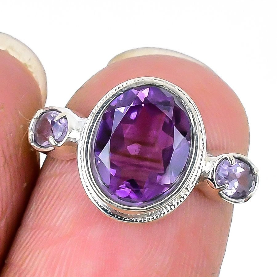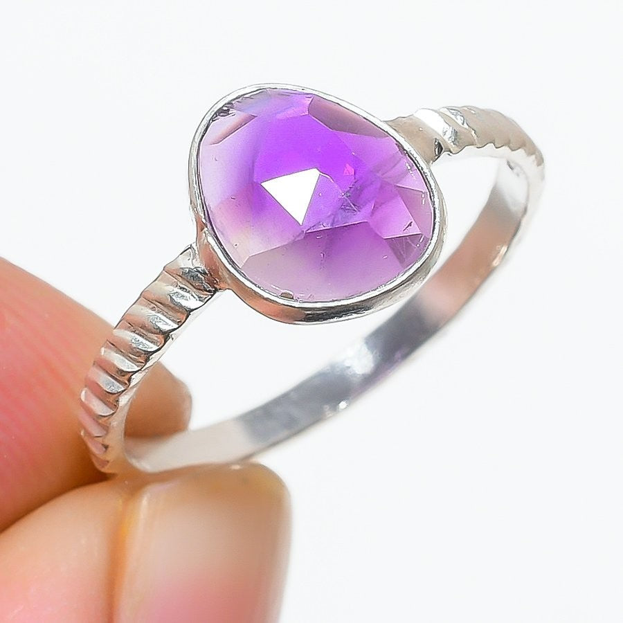Amethyst Faceted Stone 925 Sterling Silver Sister Statement Artisan Ring US 4.5