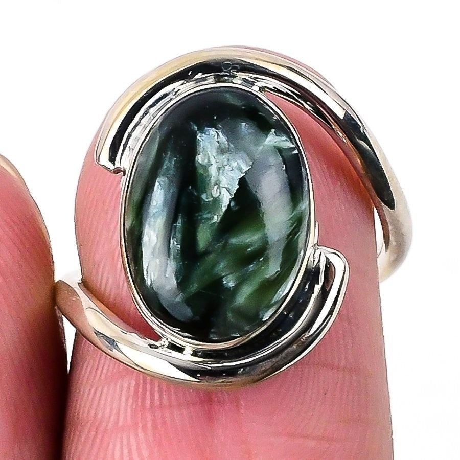 Seraphinite Stone 925 Silver Statement Sister Daughters Day Ring Jewelry US 6