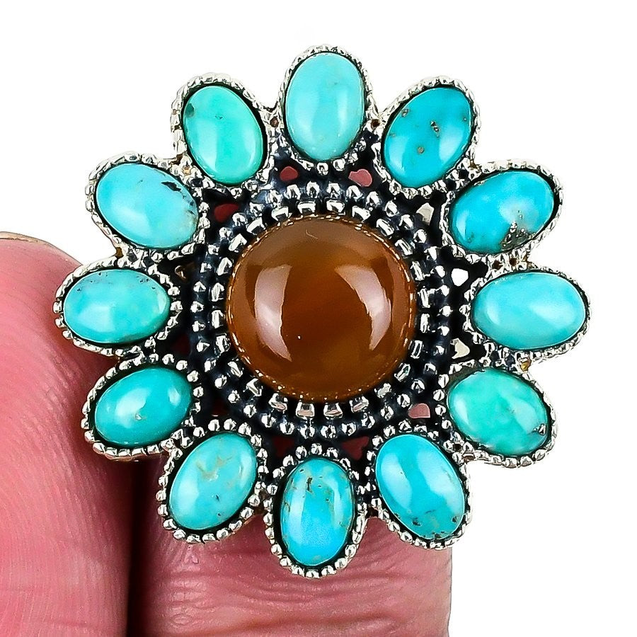 Sleeping Turquoise Gemstone 925Ā SolidĀ Silver New Statement Daughter Ring Jewelry