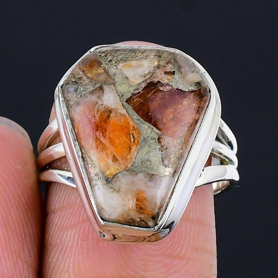 Spiny Oyster Stone 925Ā SolidĀ Silver New Statement Engagement Ring Jewelry Size 8